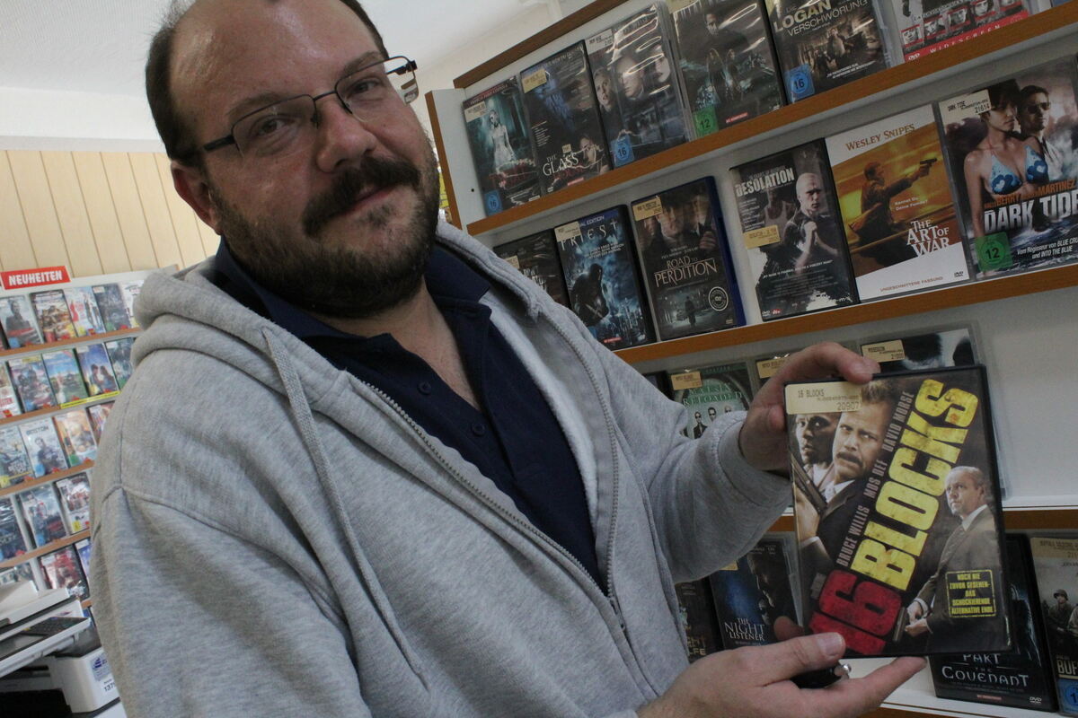 Uwe Brüstl gibt den Verleih von Filmen auf. Damit ist die letzte Videothek in Münsingen Geschichte.Foto: Fischer