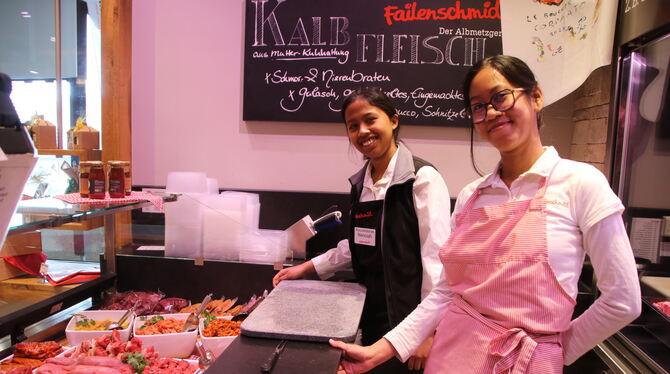 Von Madagaskar auf die Schwäbische Alb: Nancia (links) und Maholy absolvieren bei der Metzgerei Failenschmid eine Ausbildung zur Fleischereifachverkäuferin.
