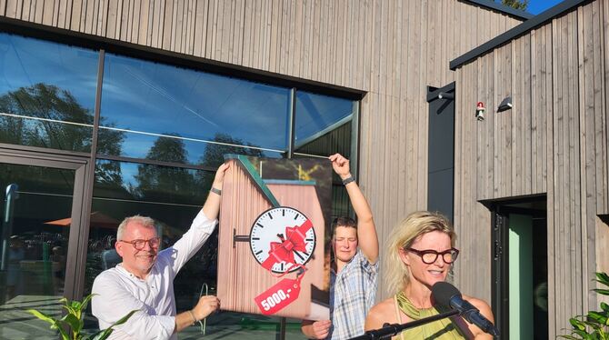 Erster Springer vom Dreimeterturm war Bürgermeister Mike Münzing.