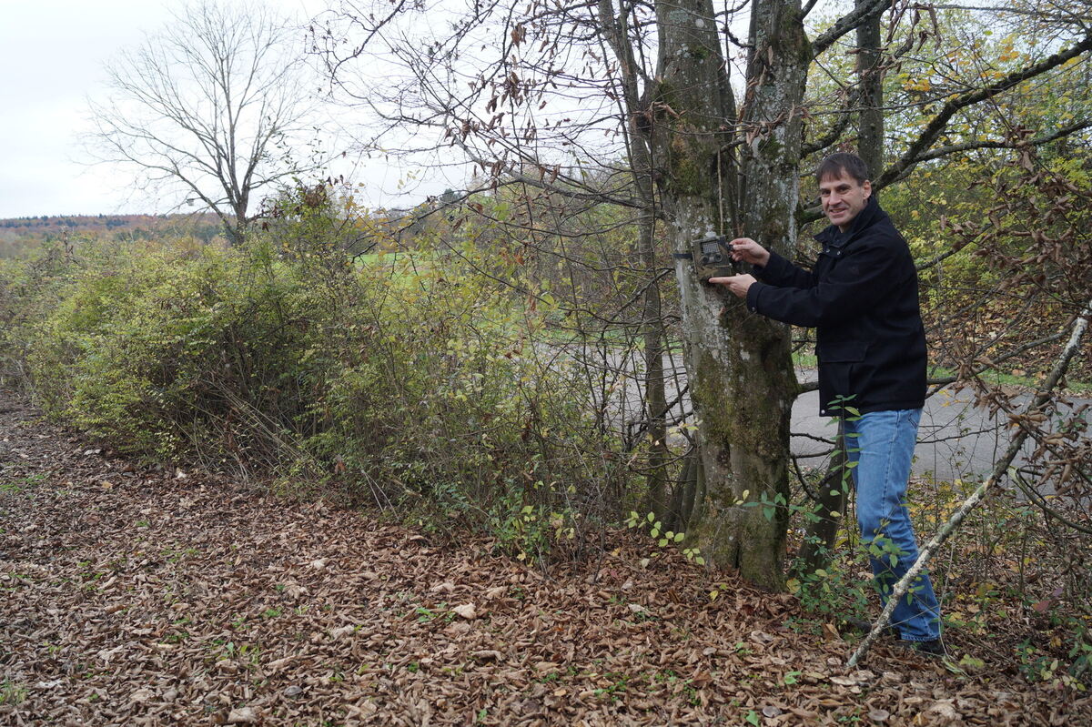 Wildkameras gehören zum Handwerkszeug von Wildtierschützer Rupert Rosenstock. Die hier am Reutlinger Markwasen wurde nur für den Fotografen angebracht.