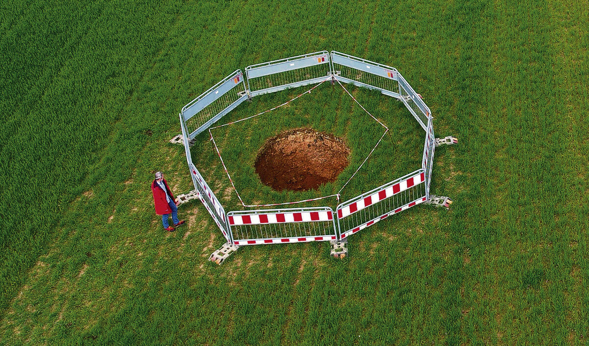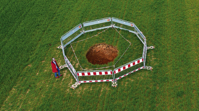 Dolinen gehören zur Alb wie die Löcher zum Schweizer Käse. Trotzdem: Das Loch, das sich auf einem Acker bei Bichishausen aufgetan hat, ist ein besonderes Exemplar, das Aufmerksamkeit erregt. Verbirgt sich in der Tiefe ein komplettes Höhlensystem? Das würden Hobby-Höhlenforscher gerne herausfinden. Ob sie die Möglichkeit dazu bekommen, entscheidet die Kirchengemeinde Bichishausen, der der Acker gehört. Die Alternative: Das Loch wird verfüllt