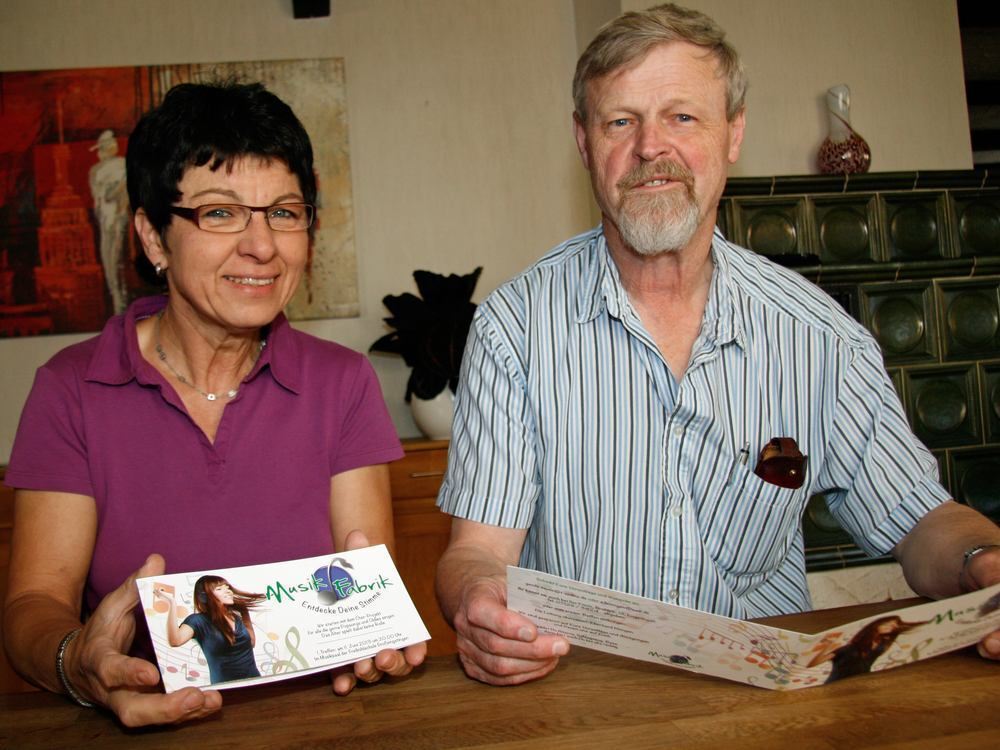 Ilse Eisele und Eberhard Höngen werben mit einem Flyer für den neuen Chor, der am kommenden Dienstag schon seine Arbeit aufnehmen soll. FOTO: LEIPPERT
