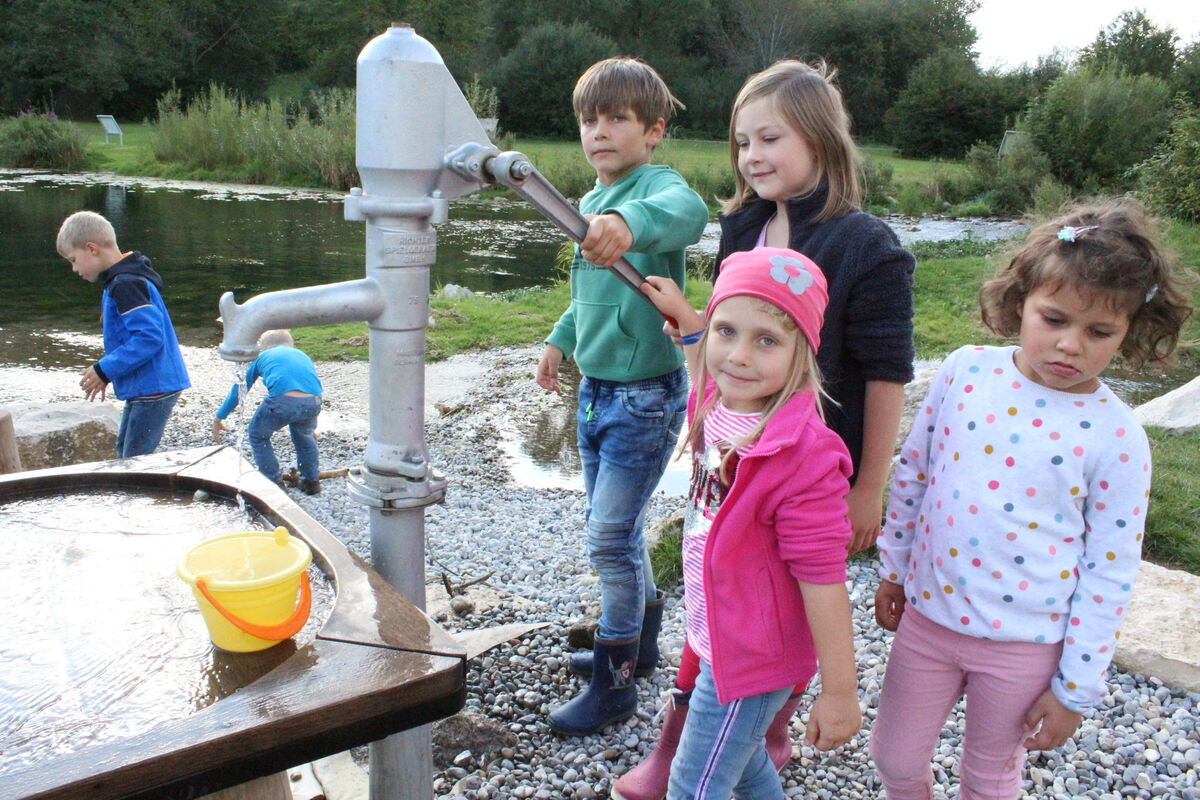Planschen, matschen, Spaß haben: Das Trochtelfinger Börse-rund-ums-Kind-Team hat aus dem Erlös der Kinderbörse den Wasserspielplatz am Mägerkinger See finanziert.