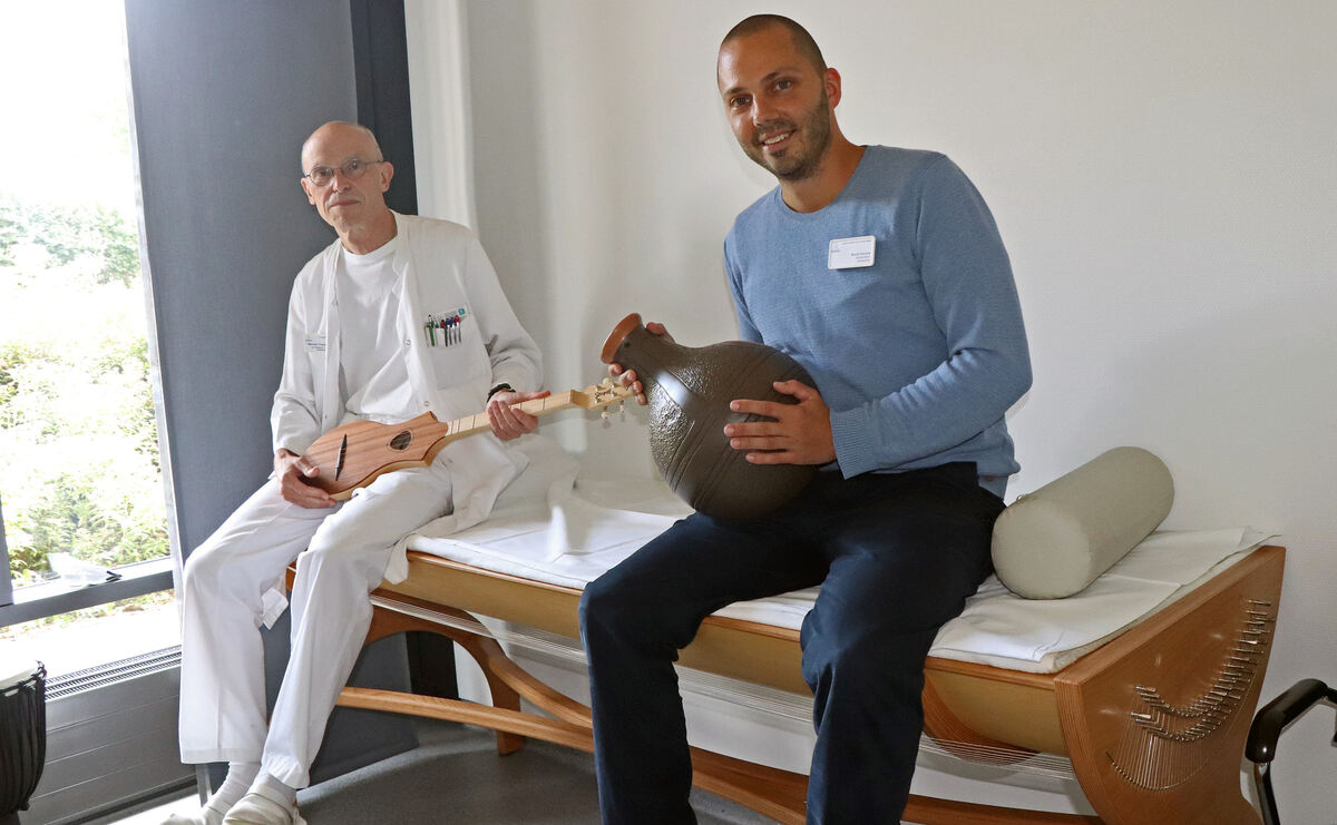 Oberarzt Werner Traub (links) freut sich, dass Martin Kucera an der Schmerzklinik Münsingen Musiktherapie anbietet.