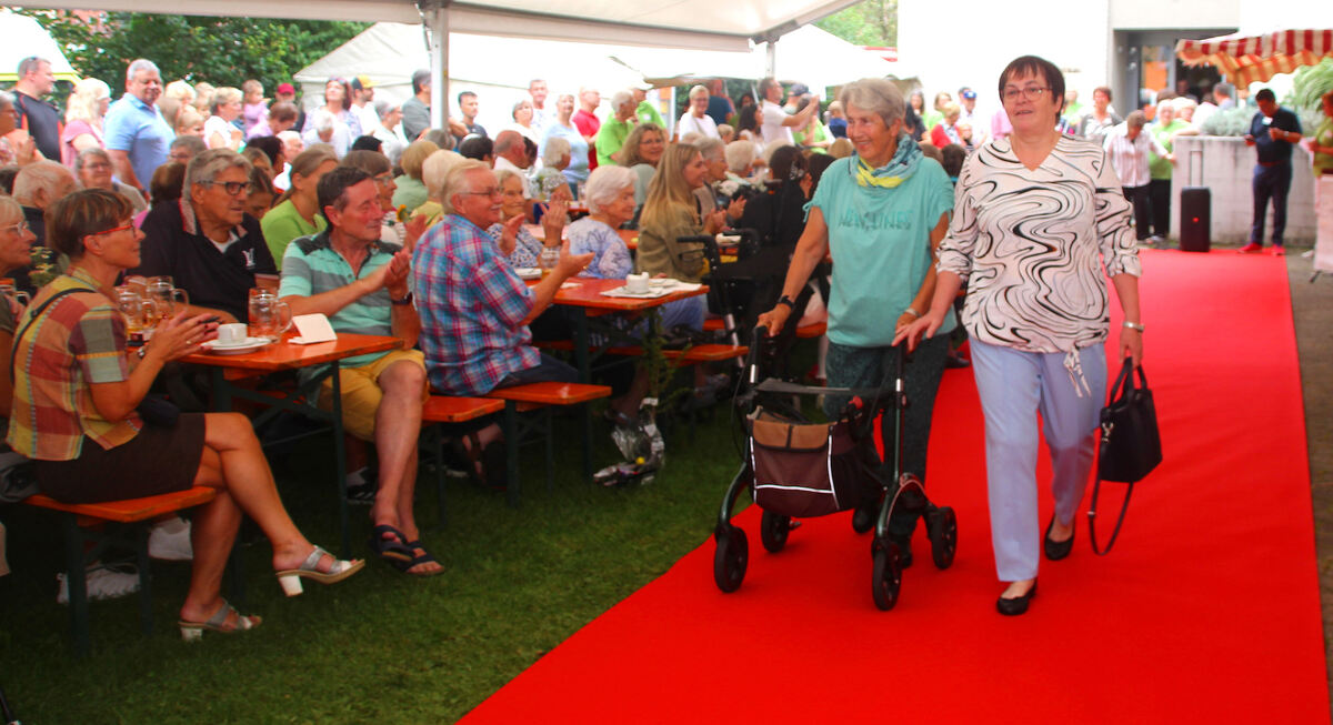Von den Zuschauern frenetisch bejubelter Glanzpunkt beim Tag der offenen Tür in der Sozialstation in Engstingen war die Modenschau mit etlichen Rollator-Models. FOTOS: LEIPPERT