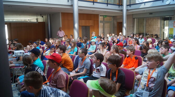 Proppenvoller Kinderuni-Hörsaal in Münsingen bei einem spannenden Vorlesungsthema. FOTO: WURSTER