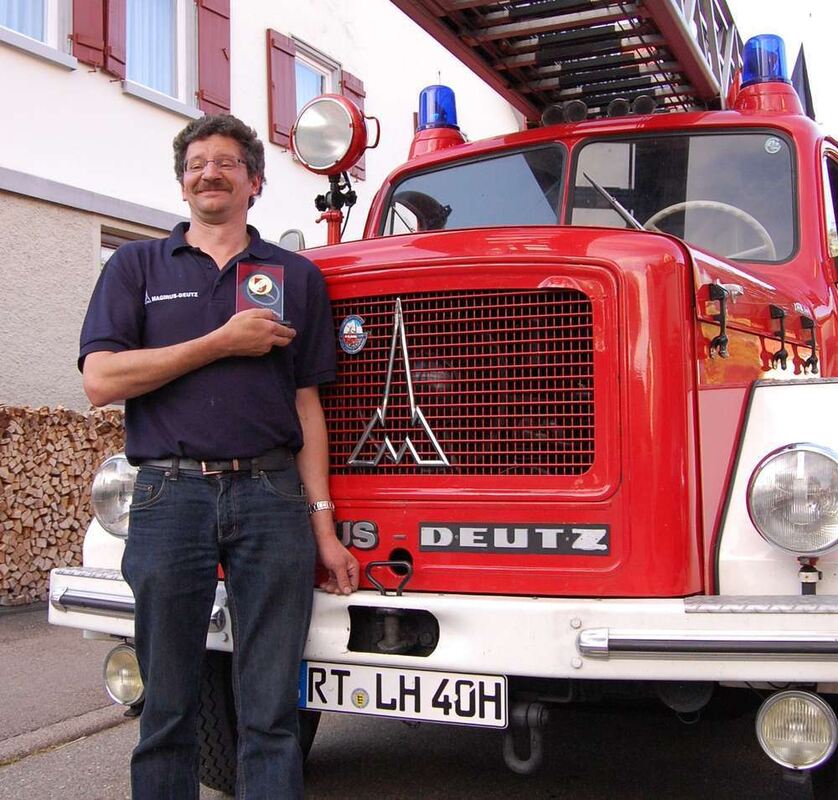 Ist stolz auf seinen Feuerwehr-Oldtimer: der Mägerkinger Werner Lorch.