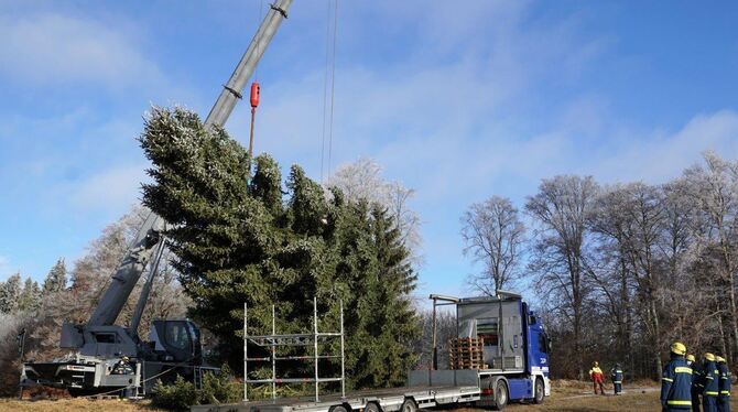 MÜNSINGEN. Zwei am vergangenen Wochenende in Thüringen geschlagene Colorado-Tannen wurden dieses Jahr vor dem Brandenburger Tor und vor dem Bundeskanzleramt aufgestellt. Zwei weitere Weihnachtsbäume für die Hauptstadt wurden am Samstagmorgen auf dem ehemaligen Münsinger Truppenübungsplatz gefällt. Sie werden am Sonntagmorgen vom THW zur baden-württembergischen Landesvertretung und zum Dienstsitz der Polizeipräsidentin nach Berlin gefahren.