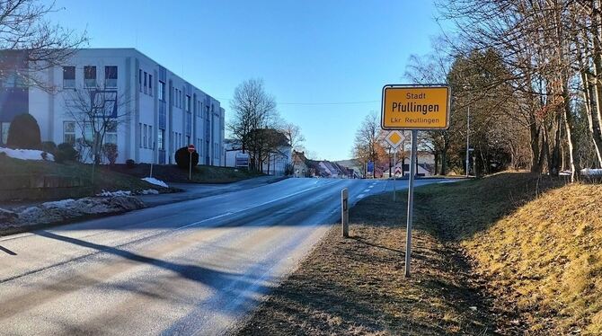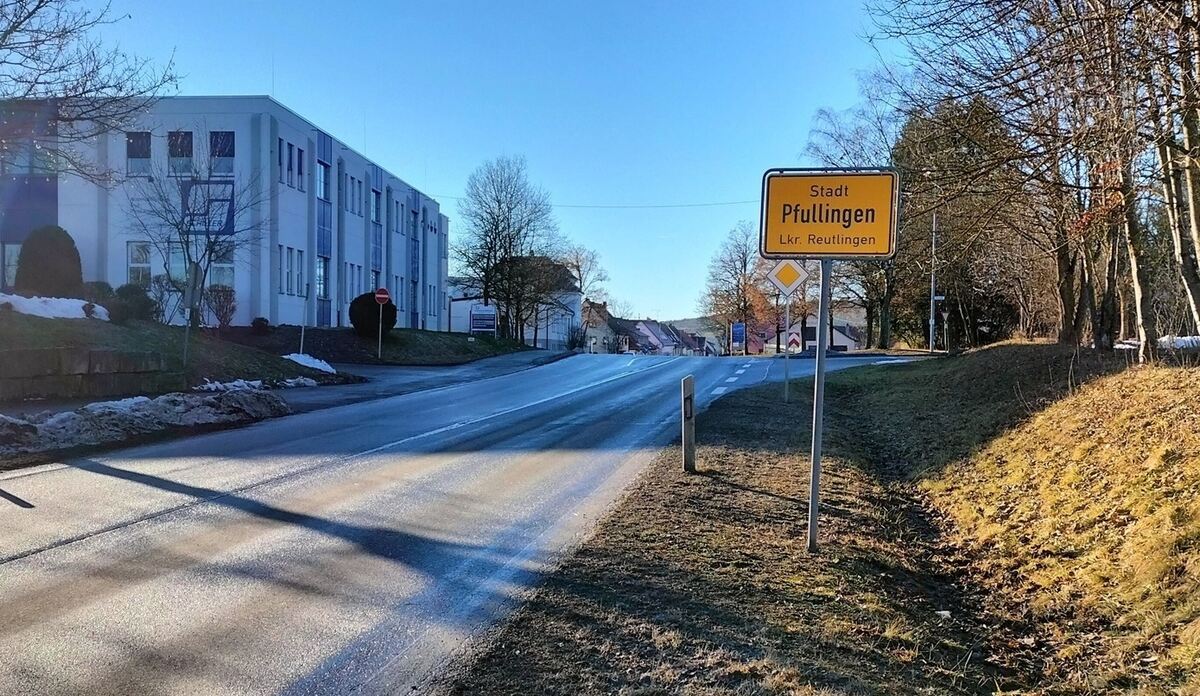Hier ist das abmontierte Pfullinger Ortsschild wieder aufgetaucht: am Ortseingang von Sonnenbühl-Genkingen.