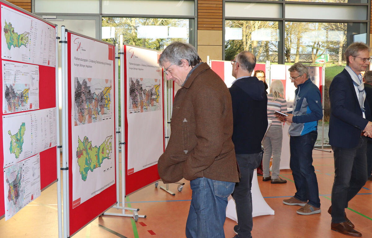 Bürger nutzten die Gelegenheit, sich Pläne zum Bau von Windkraftanlagen anzuschauen. FOTO: BLOCHING