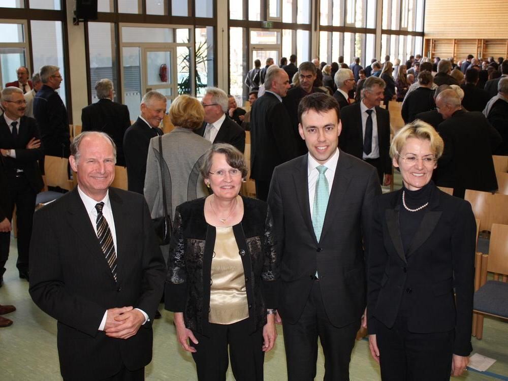 Herbert Seeber (von links) und seine Nachfolgerin Sigrid Brucker-Maschke wurden von Minister Dr. Nils Schmid und Oberfinanzpräsidentin Andrea Heck in ihrem Wirken gewürdigt und mit Glückwünschen für die Zukunft bedacht.