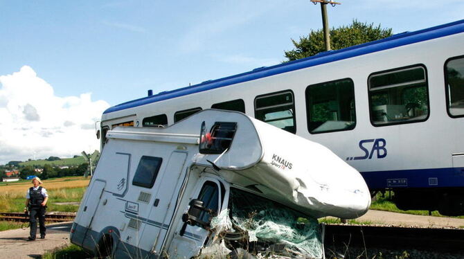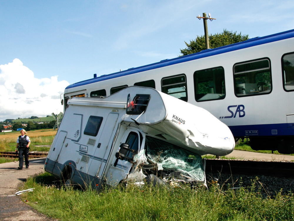 Wohnmobil contra Triebwagen: Vier Verletzte