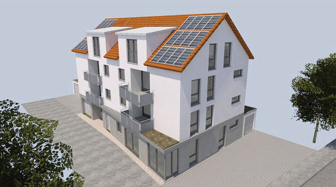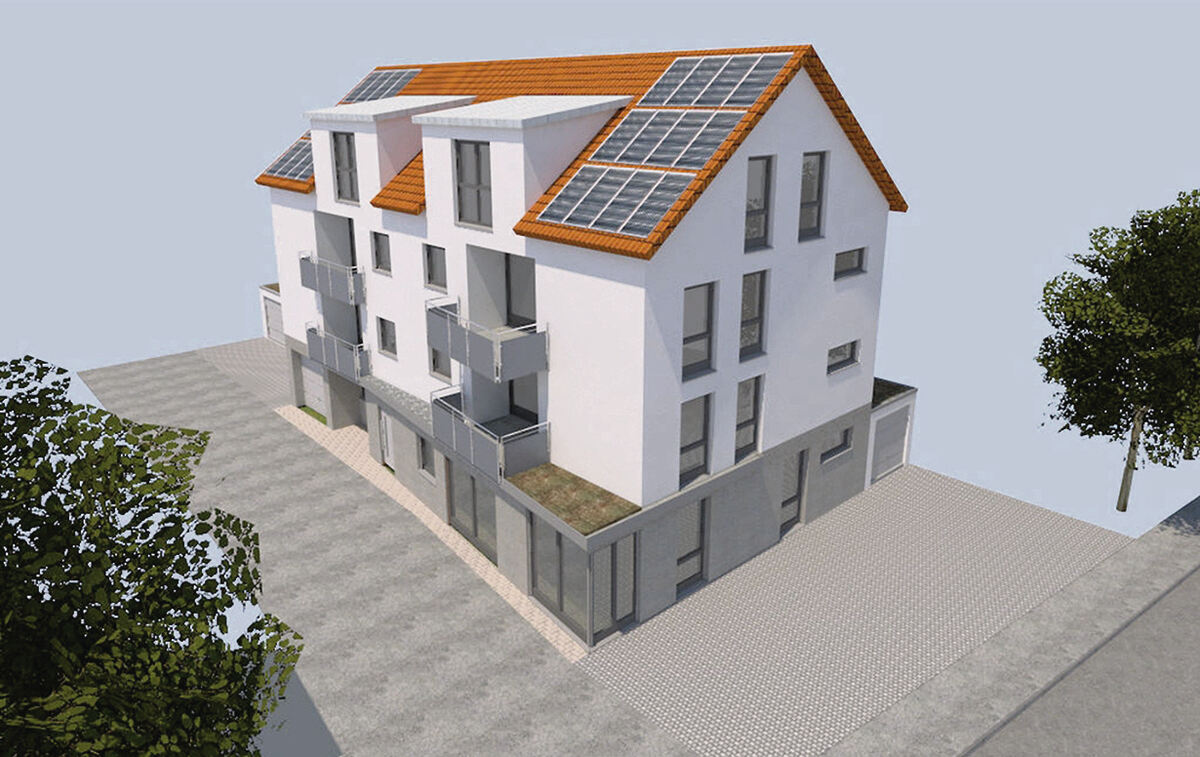 Vier Wohnungen und eine Gewerbeeinheit finden Platz im Neubau in der Marktstraße 13. GRAFIK: F UND H MASSIVBAU