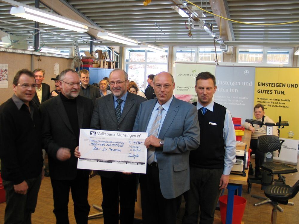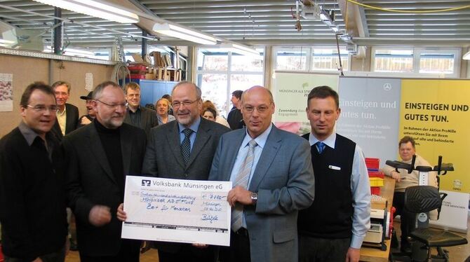 Spendenübergabe: Das Autohaus Bühle hat 7 880 Euro der Münsinger Albstiftung Zeit für Menschen vermacht. Foto Oelkuch