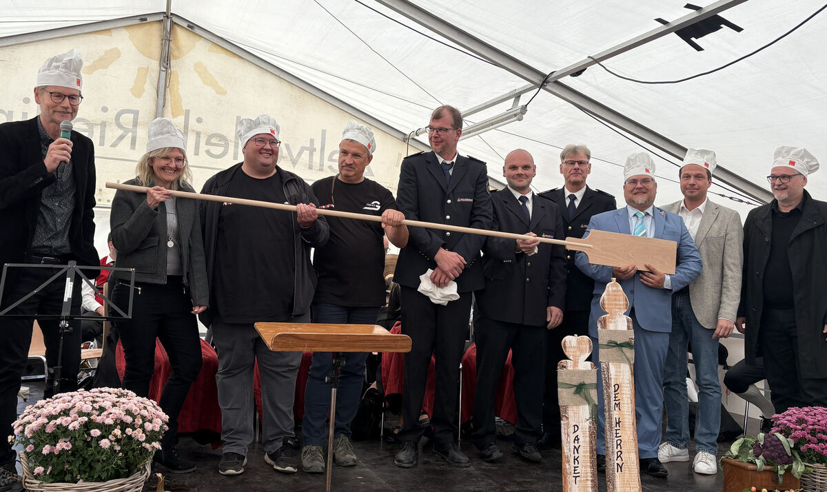 Der Bau des neuen Dorfgemeinschaftshauses mit Feuerwehrhaus, Backhaus, Veranstaltungs- und Vereinsraum sowie Bürgersaal ist laut Städteplaner Clemens Künster (links) »das Werk vieler Bäcker«.
