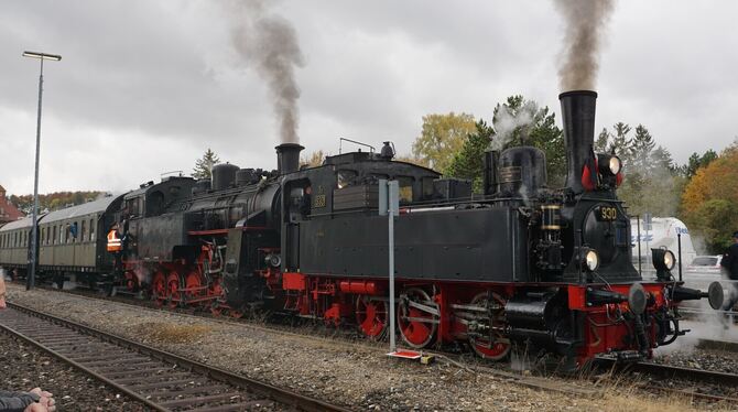 Historischer Moment: Die beiden Loks ziehen gemeinsam einen Zug.