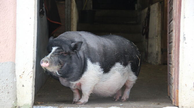 Zwergschwein Berta aus Dapfen fühlt sich sauwohl in Küche und Pferdestall