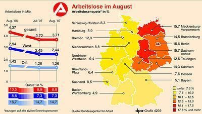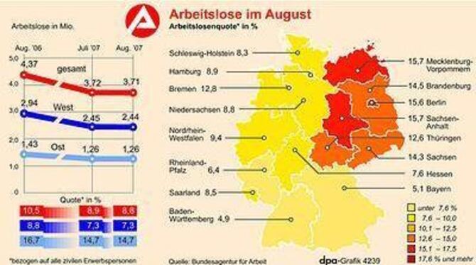 Übersicht: Arbeitslosenquote in den Bundesländern.
