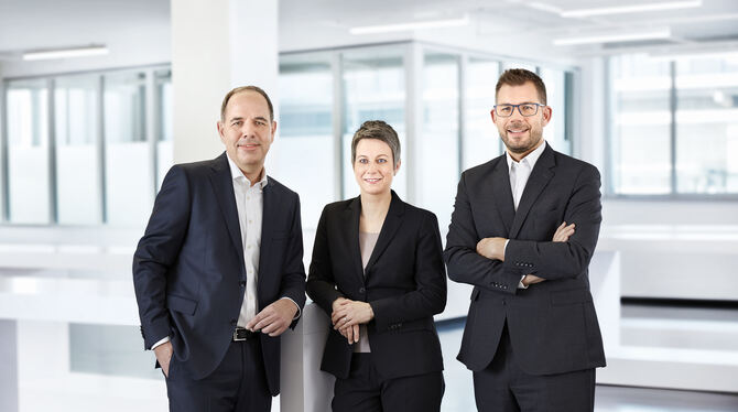 Frank Paul Nonnenmann (links) führt mit Katrin Stegmaier-Hermle und Florian Hermle Balluff. FOTO: BALLUFF