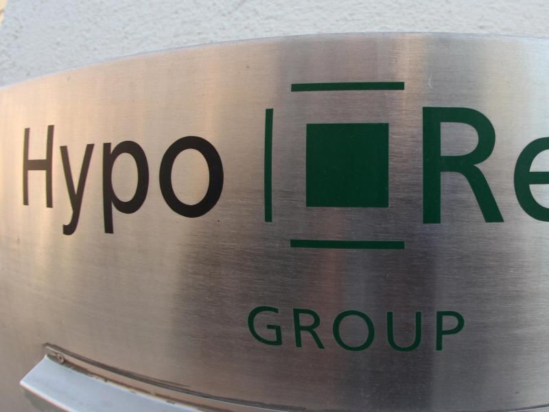 Das Logo der Hypo Real Estate. Das Unternehmen erhält etwa 9,8 Mrd. Euro, so die Bundesanstalt für Finanzmarktstabilisierung. Foto: Lukas Barth