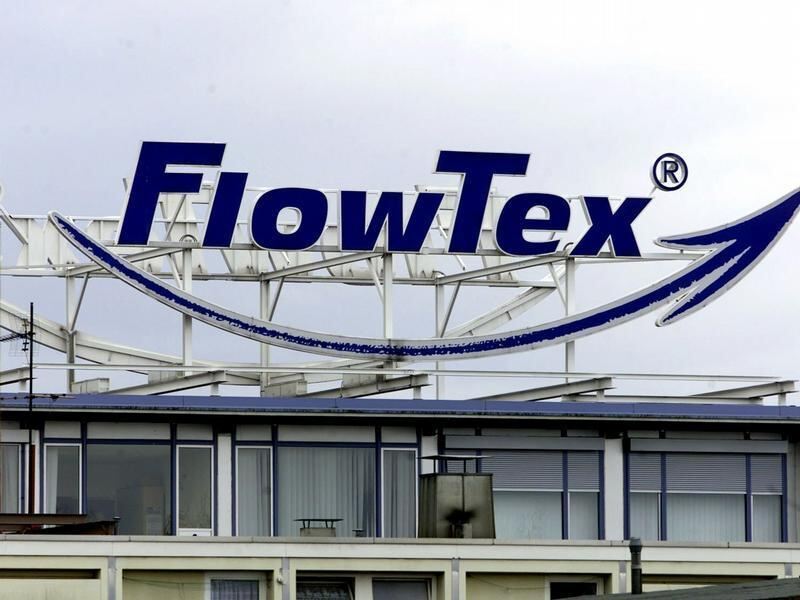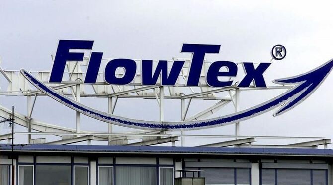 Das FlowTex-Logo auf der ehemaligen Firmenzentrale in Ettlingen. Foto: Uli Deck (Archiv von 2000)