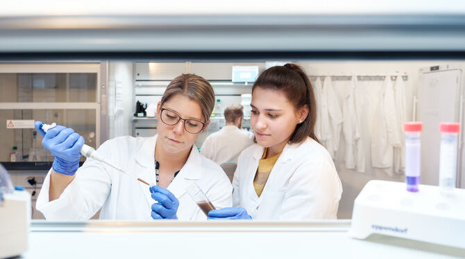 Zwei Cegat-Mitarbeiterinnen untersuchen Proben im Labor. FOTOS: CEGAT