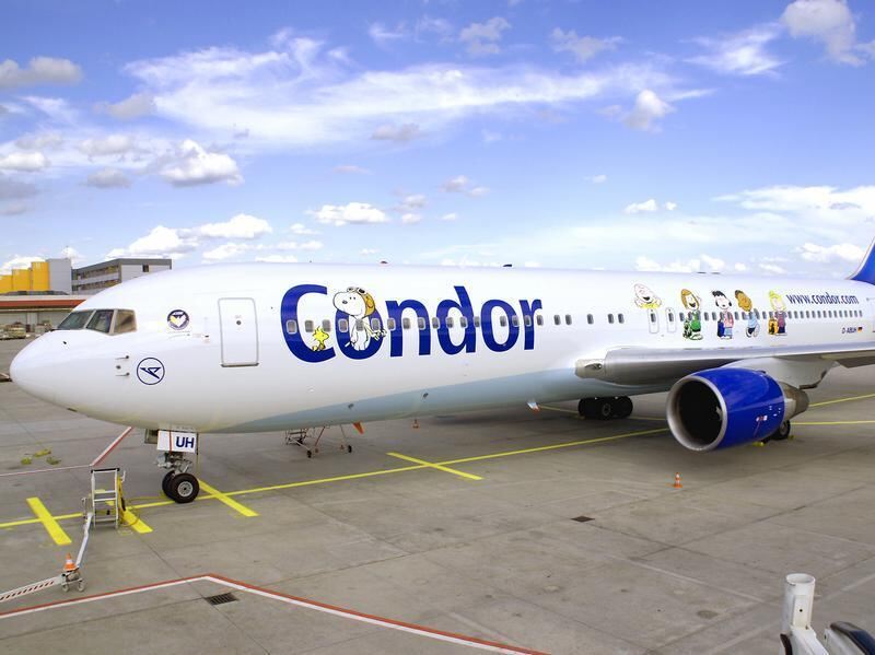 Boeing 737-300 der Fluggesellschaft Condor mit einer Peanuts-Sonderbemalung.