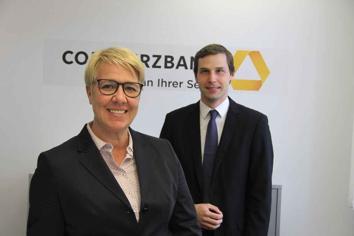 Cora Heide (Privat- und Unternehmerkunden) und Stefan Gruber (Firmenkunden) leiten die Niederlassung Reutlingen der Commerzbank.