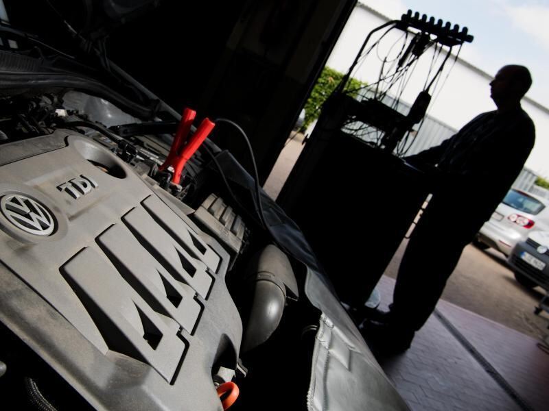 Software-Update bei einem Golf mit 2,0-Liter-Dieselmotor: Die Zahl der juristischen Baustellen bei Volkswagen wächst, und damit das Kostenrisiko. Foto: Julian Stratenschulte
