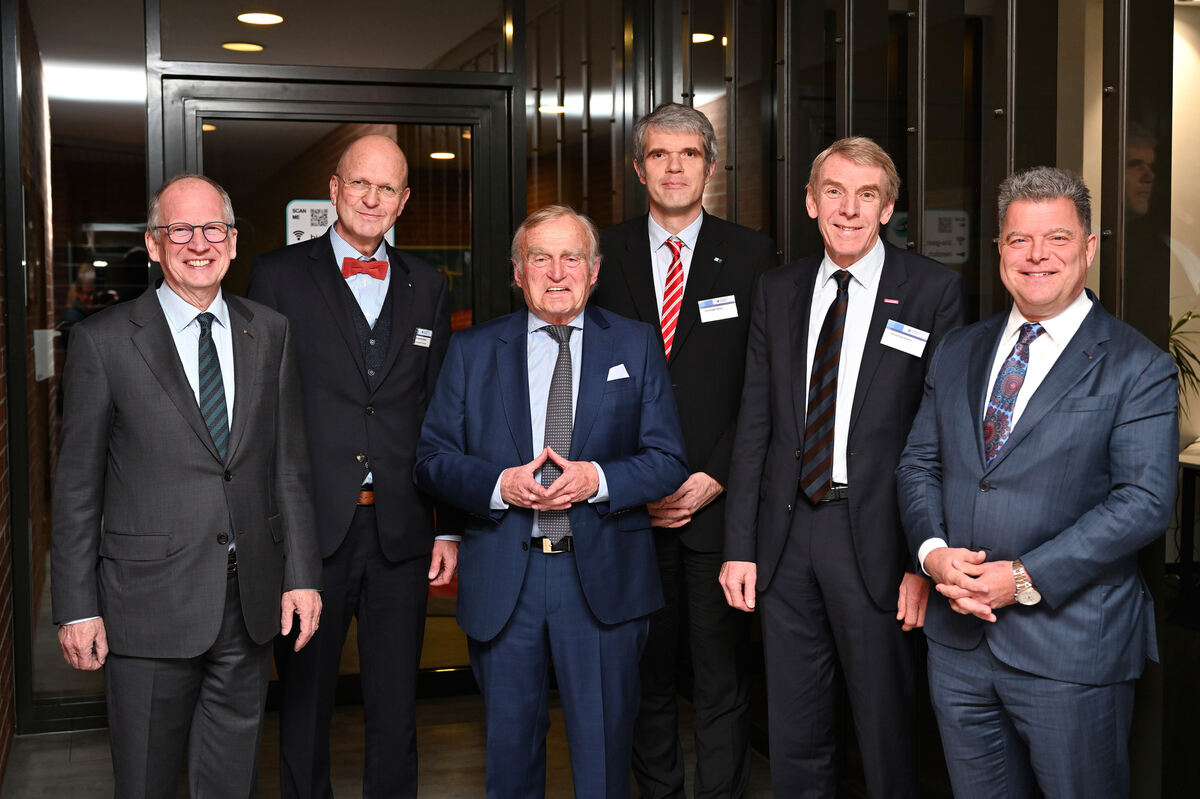 Neujahrsempfang der Reutlinger Kammern (von links): Landeshandwerkspräsident Rainer Reichhold, Joachim Eisert, Hauptgeschäftsführer der Handwerkskammer Reutlingen, Bundeswirtschaftsminster a. D., Helmut Haussmann, Christoph Heise, stellvertretender Hauptgeschäftsführer der IHK Reutlingen, Harald Herrmann, Präsident der Handwerkskammer Reutlingen, und Christian Erbe, Präsident der IHK Reutlingen. FOTO: PIETH