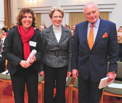 Reinhold Würth kurz vor seiner Rede mit OB Barbara Bosch und Dr. Ursula Weber von »Engagiert - Unternehmen für Reutlingen« (von rechts).