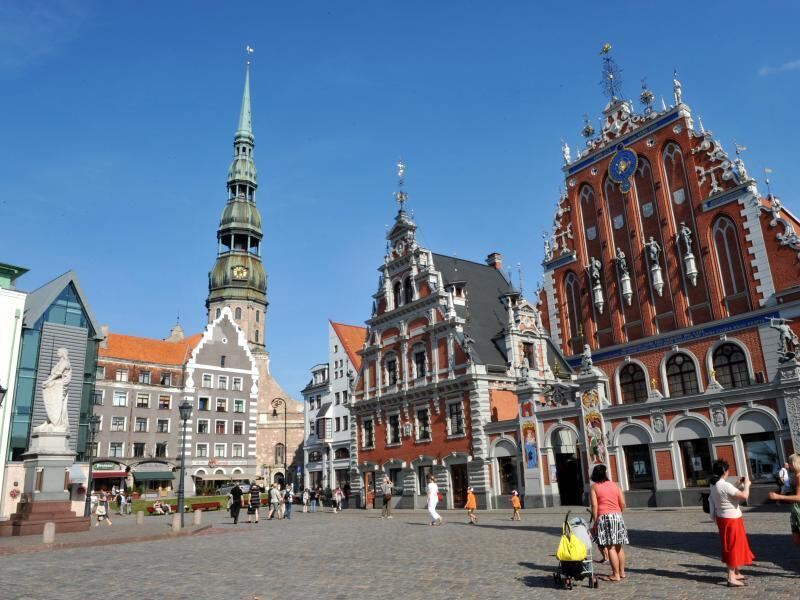 Der Rathausplatz der lettischen Hauptstadt Riga. Lettland kann zum 1. Januar kommenden Jahres den Euro einführen. Foto: Uwe Zucchi