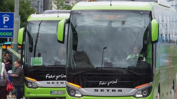 Fernbusse von Flixbus unweit des Hauptbahnhofs in Frankfurt am Main. Foto: Boris Roessler