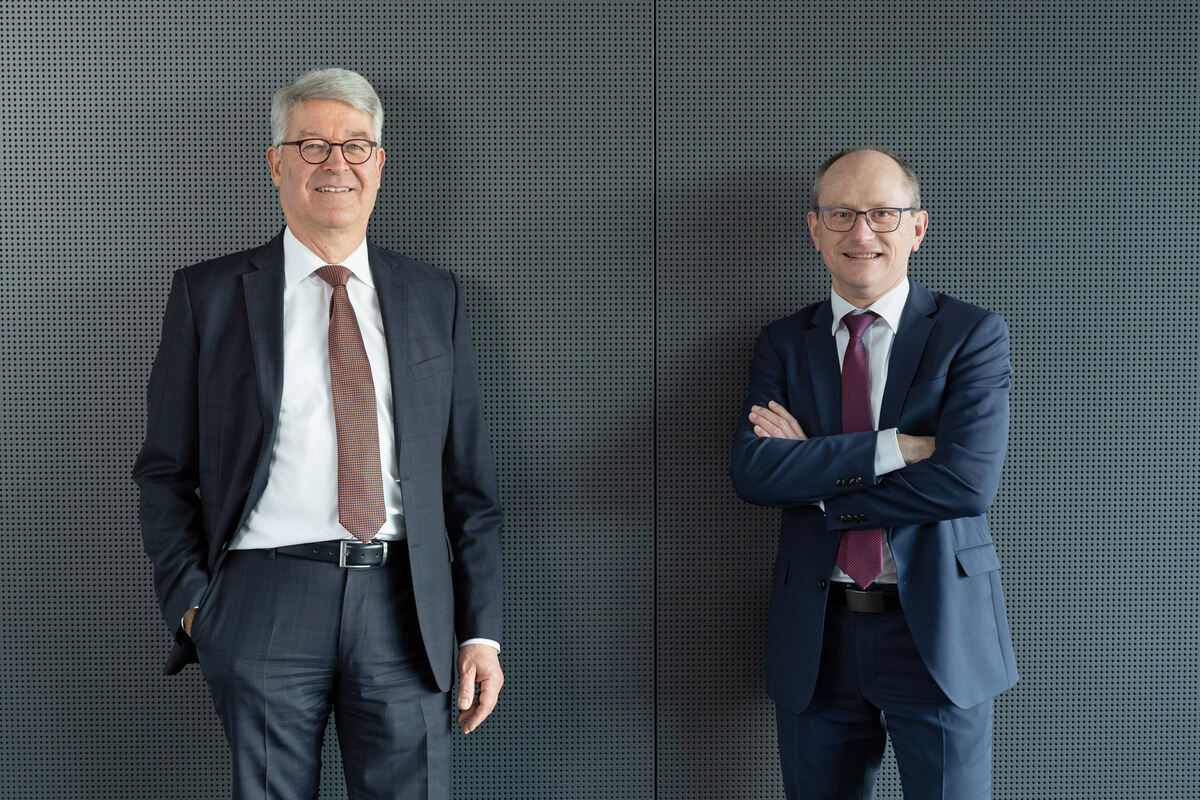 Vorsitzender Christoph Gögler (links) und Hans Lamparter bilden den Vorstand der Kreissparkasse Tübingen. FOTO: KREISSPARKASSE TÜBINGEN