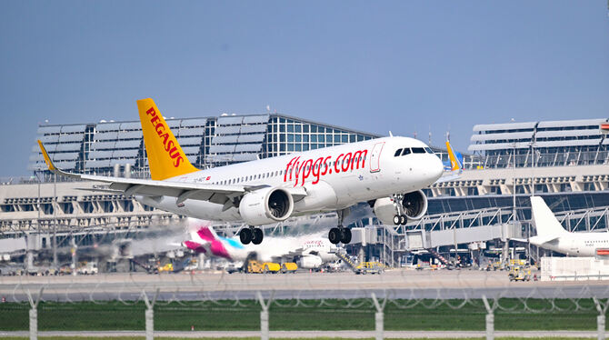 Ein Passagierflugzeug landet auf dem Flughafen der baden-württembergischen Landeshauptstadt Stuttgart. Der Flughafen hat gestern im Rahmen einer Pressekonferenz seine Geschäftszahlen für das vergangene Jahr bekannt gegeben. FOTO: WEISSBROD/DPA