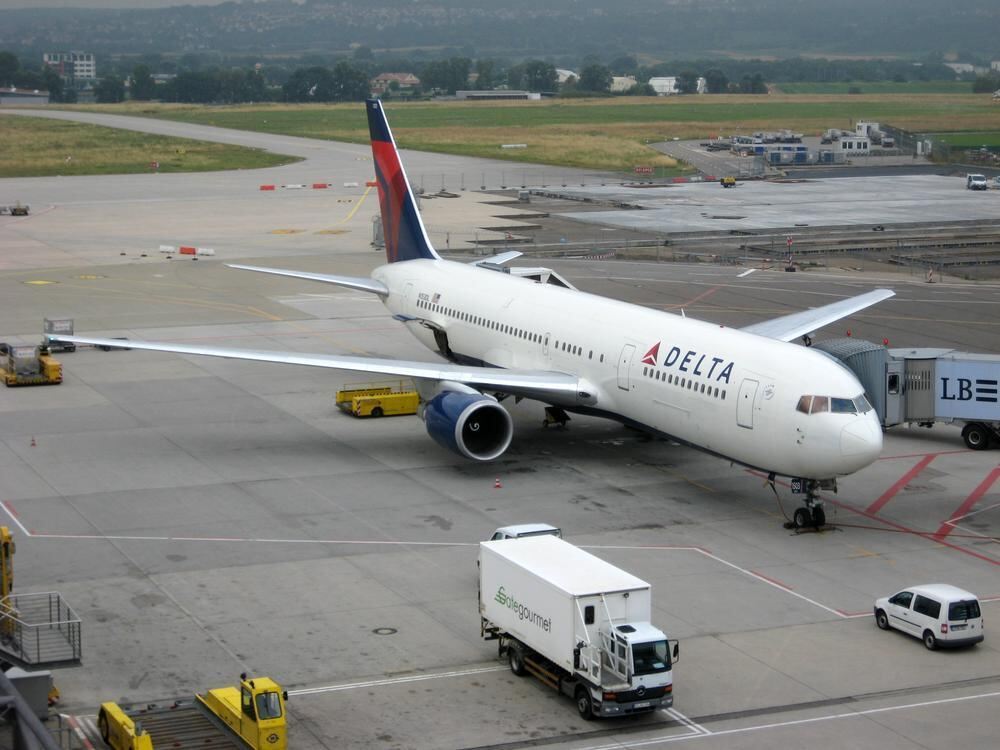 Eine Boeing 767 von Delta Airlines auf dem Flughafen Stuttgart.