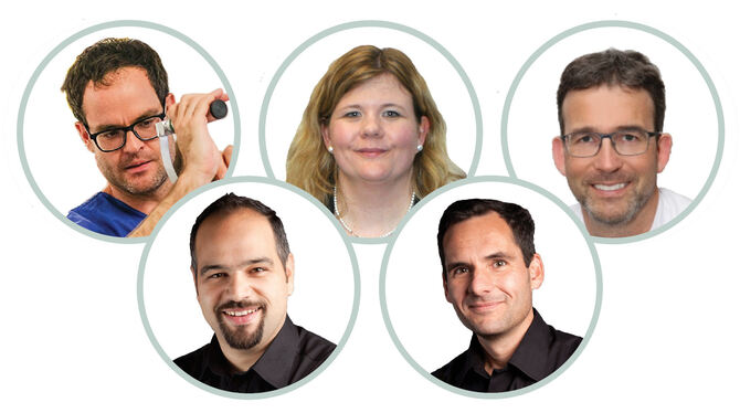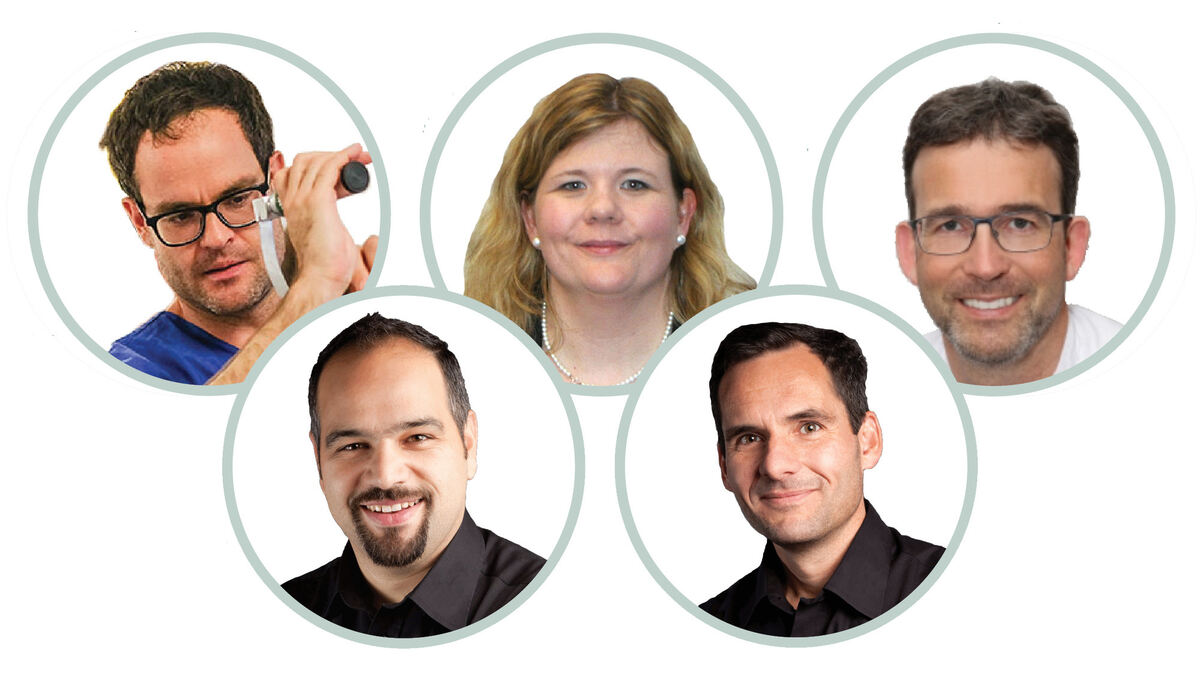 Die Gründer von Hellstern Medical: Oben: Felix Neunhoeffer, Geschäftsführerin Sabrina Hellstern, Martin Schuhmann, sowie unten Alexander Strobel und Harald Rager. FOTO: HELLSTERN