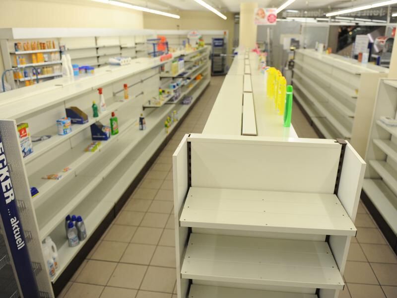 Leer sind die Regale in einer Filiale der Drogeriemarkt-Kette Schlecker. Die Schlecker-Filiale ist eine von 2200, in denen das letzte Mal der Schlüssel umgedreht wurde und die Türen nun für immer geschlossen bleiben. Foto: Andreas Gebert