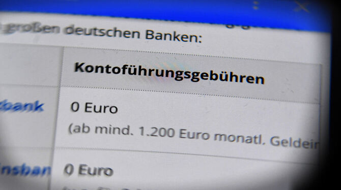 Kontoführungsgebühren verschiedener Banken auf einem Handydisplay.