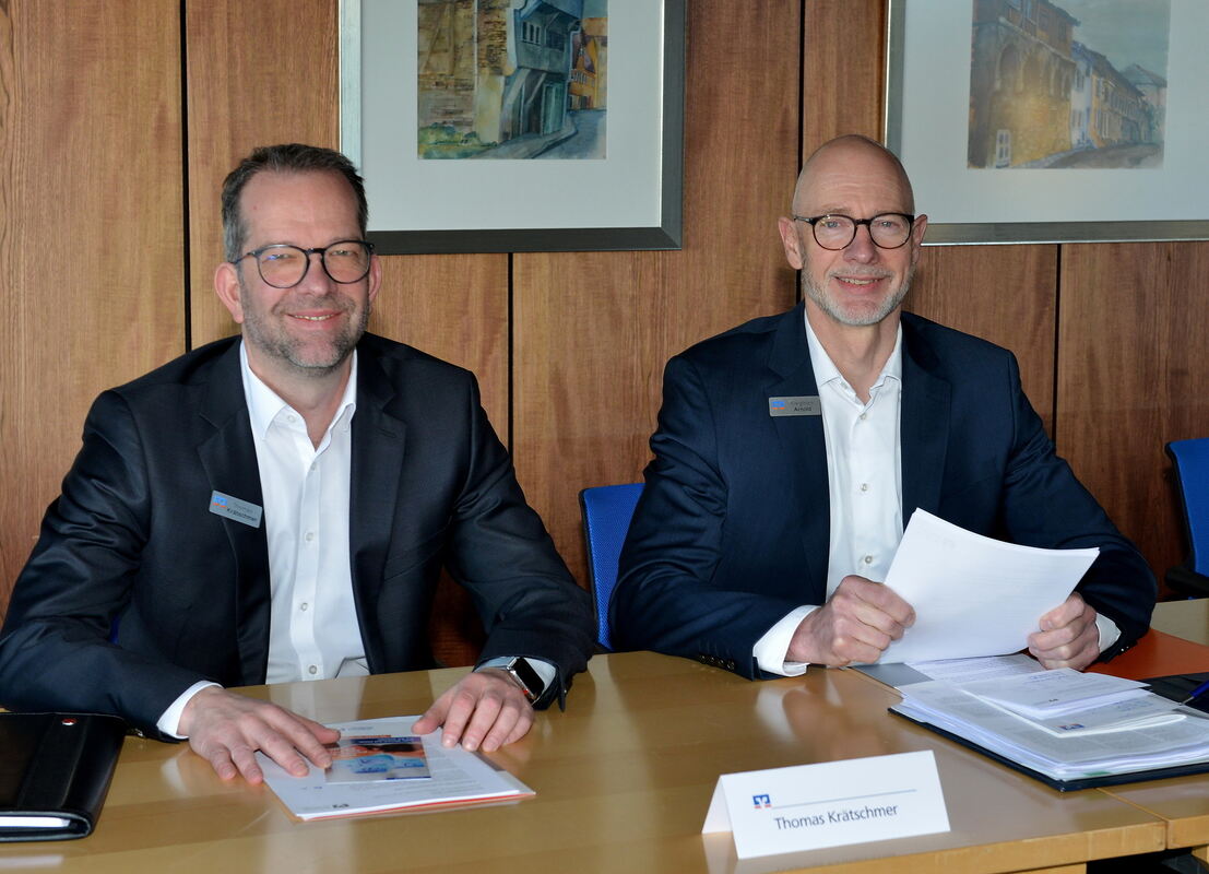 Thomas Krätschmer (links) und Vorsitzender Siegfried Arnold bilden den Vorstand der Volksbank Reutlingen. FOTO: NIETHAMMER