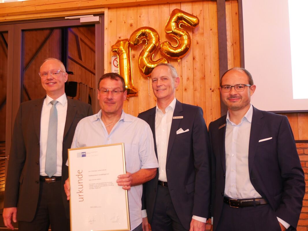 Kleine Feier zum großen Jubiläum: Prof. Markus Nawroth (von links) von der IHK gratulierte mit der Übergabe einer Urkunde an Aufsichtsratsvorsitzenden Bernd Höhn und die beiden Vorstände Peter Edelburg sowie Arthur Göllner.