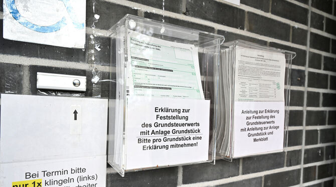 Grundsätzlich ist die Grundsteuererklärung elektronisch abzugeben. Als Folge zahlreicher Anrufe hat das Finanzamt Reutlingen jedoch am Eingang Papierformulare und entsprechende Anleitungen dazu ausgelegt. FOTO: PIETH