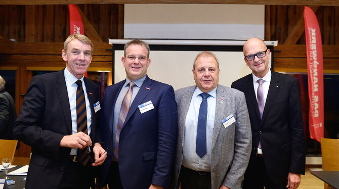 Der wiedergewählte Präsident der Handwerkskammer Reutlingen, Harald Herrmann, der neue Vizepräsident Alexander Wälde, der wiedergewählte Vizepräsident Harald Walker und Hauptgeschäftsführer Joachim Eisert (von links). FOTO: PIETH