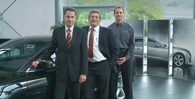 Verkaufsleiter Ralf Schnizer, Geschäftsführer Bernd Heusel und Serviceleiter Stephan Kreißig (von links) vom Audi-Zentrum Reutlingen blicken auf starken Zuwachs in 2006 zurück. Im laufenden Jahr erhoffen sie sich noch einen Schub durch die neue A4-Limousine.