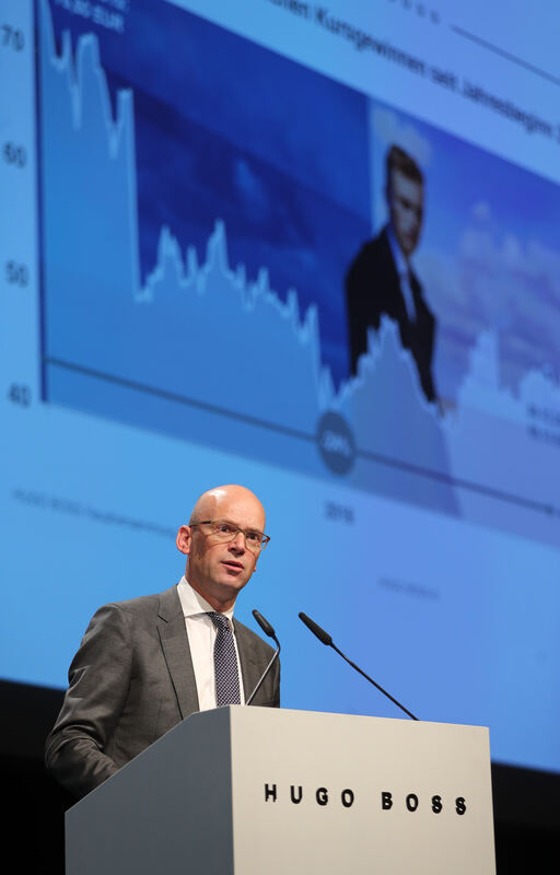 Vorstandschef Mark Langer erklärt den Aktionären bei der Hauptversammlung vor einem Jahr die Gründe für die Kurskorrektur. FOTO: HUGO BOSS