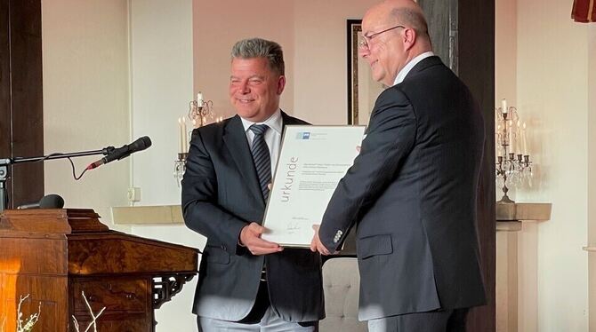 STARZACH. Die IHK Reutlingen hat den Starzacher Unternehmer Max-Richard Freiherr Raßler von Gamerschwang mit der Ehrennadel in Gold geehrt. Damit würdigt die IHK sein langjähriges Engagement für die Tourismusbranche und die Wirtschaft der Region. »Baron Raßler ist eine herausragende Unternehmerpersönlichkeit, die sich durch ihr außergewöhnliches gesellschaftliches Engagement auszeichnet«, sagte IHK-Präsident Christian O. Erbe bei der Verleihung der Auszeichnung anlässlich des 60. Geburtstages von Rassler.