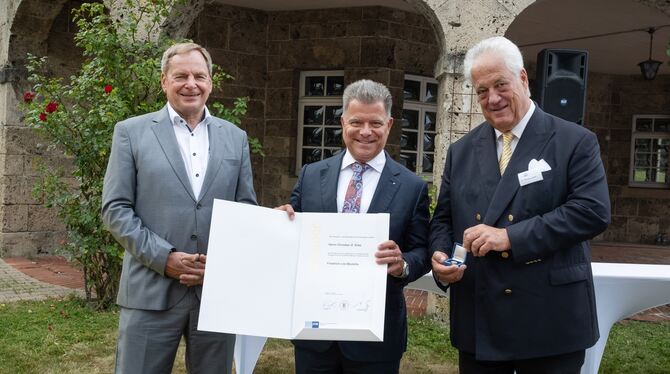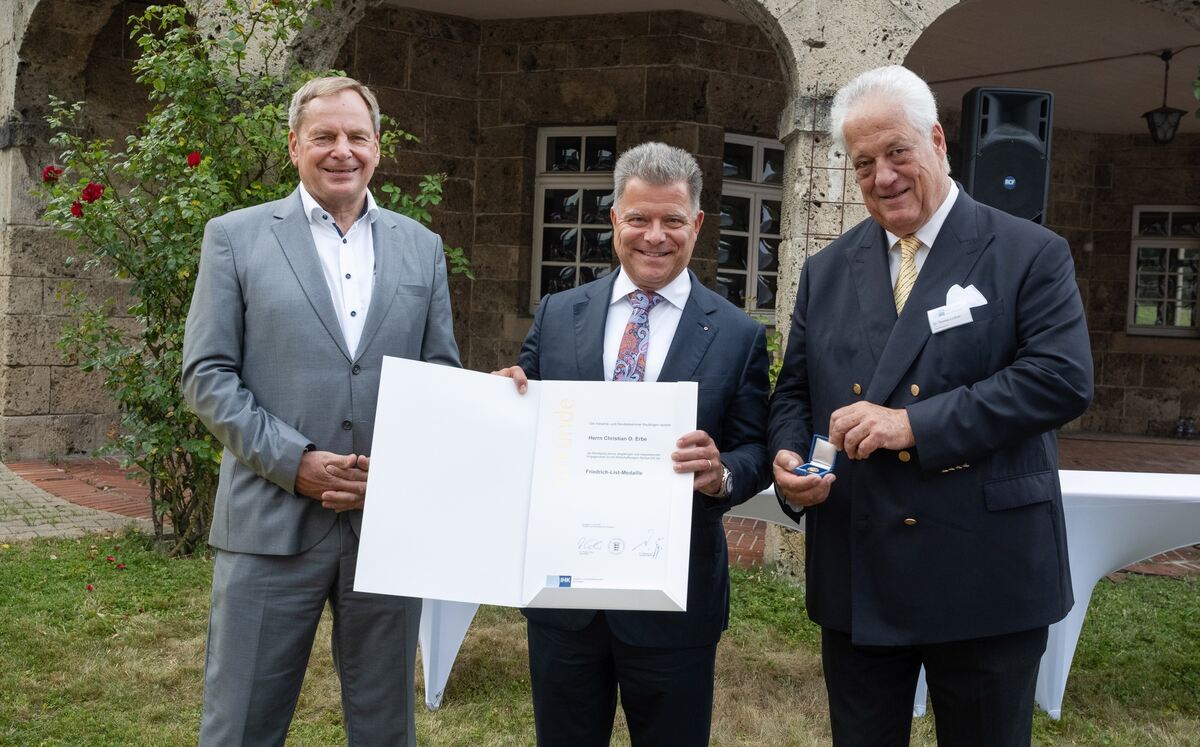 Christian Otto Erbe, hat die Friedrich-List-Medaille in Gold, die höchste Auszeichnung der IHK Reutlingen, erhalten. Der Geschäftsführer der Erbe Elektromedizin GmbH in Tübingen ist seit 15 Jahren IHK-Präsident. Er scheidet turnusgemäß zum Ende der aktuellen Amtszeit aus der IHK-Vollversammlung aus. »Sie haben das Ehrenamt mit Tatkraft, strategischem Weitblick und menschlicher Zugewandtheit ausgeführt«, sagte IHK-Vizepräsident Thomas Lindner in seiner Laudatio.