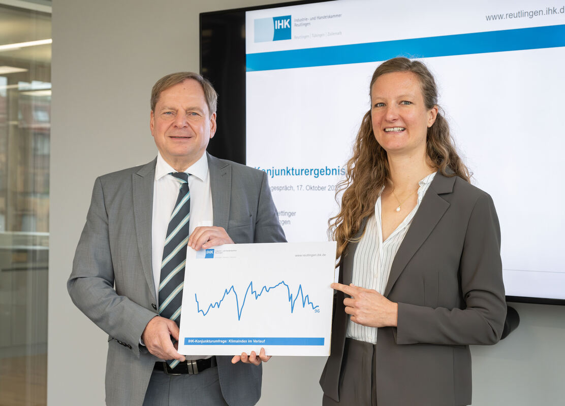 Hauptgeschäftsführer Wolfgang Epp und Konjunkturexpertin Antonia Hettinger von der Industrie- und Handelskammer Reutlingen stellten die Ergebnisse einer Umfrage unter Mitgliedsunternehmen vor.