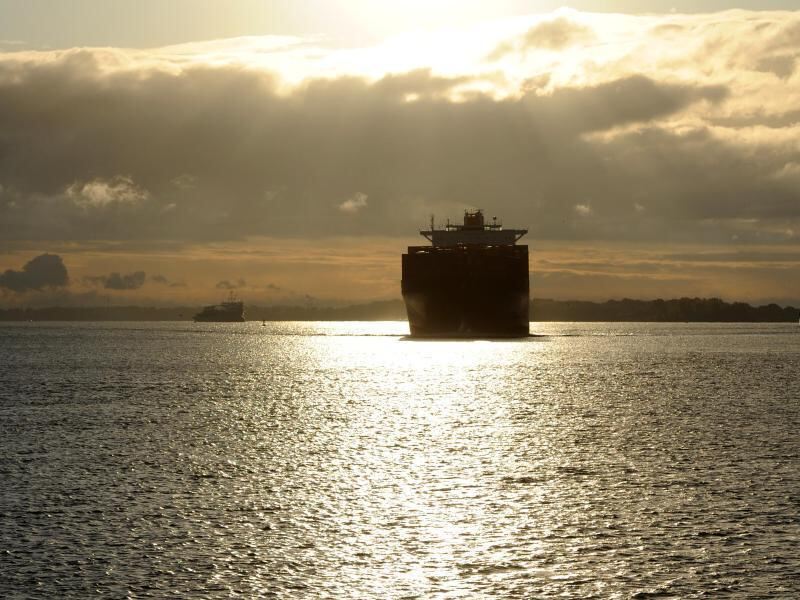 Ein Containerschiff fährt auf der Elbe von Hamburg kommend in Richtung Nordsee. Der Strom soll vertieft werden, damit die immer größeren Containerschiffe weiter den Hamburger Hafen ansteuern können. Foto: Christian Charisius