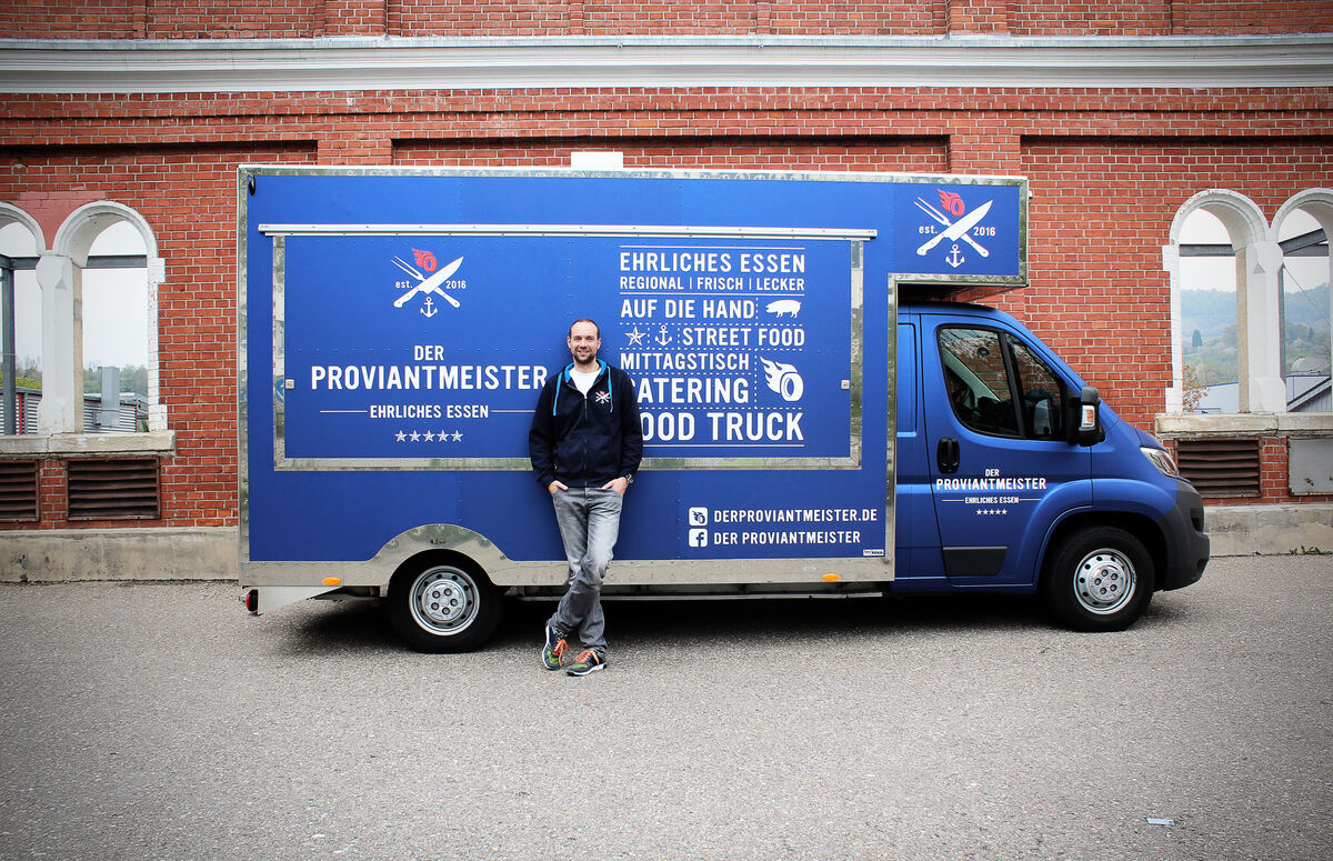 Daniel Meissner mit seinem 6,15 Meter langen Foodtruck. FOTO: MEISSNER